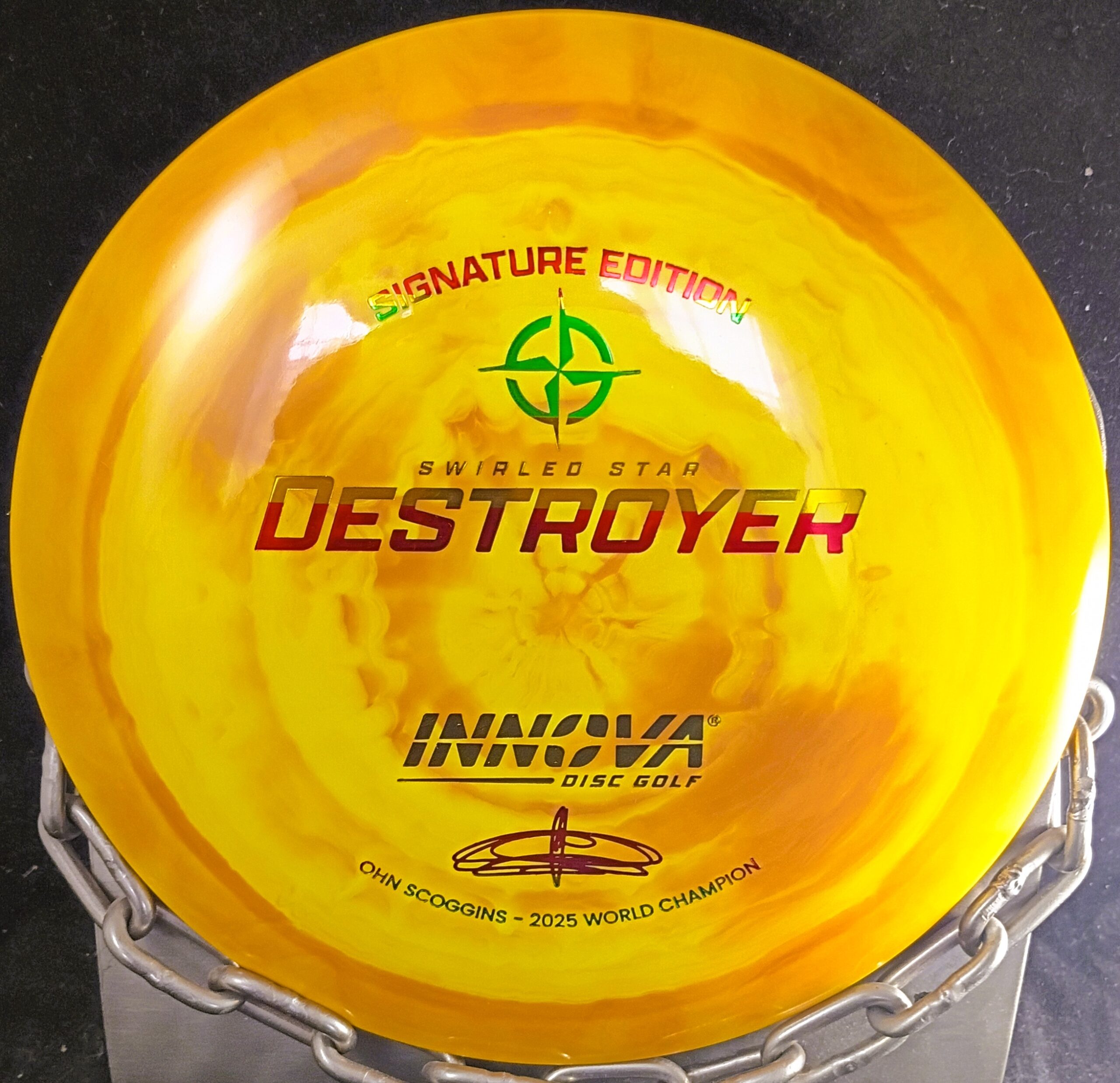 This is a Brand New Innova 2025 World Champion Ohn Scoggins Signature Edition Swirly Star DESTROYER Disc Golf Driver 173-5 grams in unthrown condition. The disc in the picture is the disc you get!
