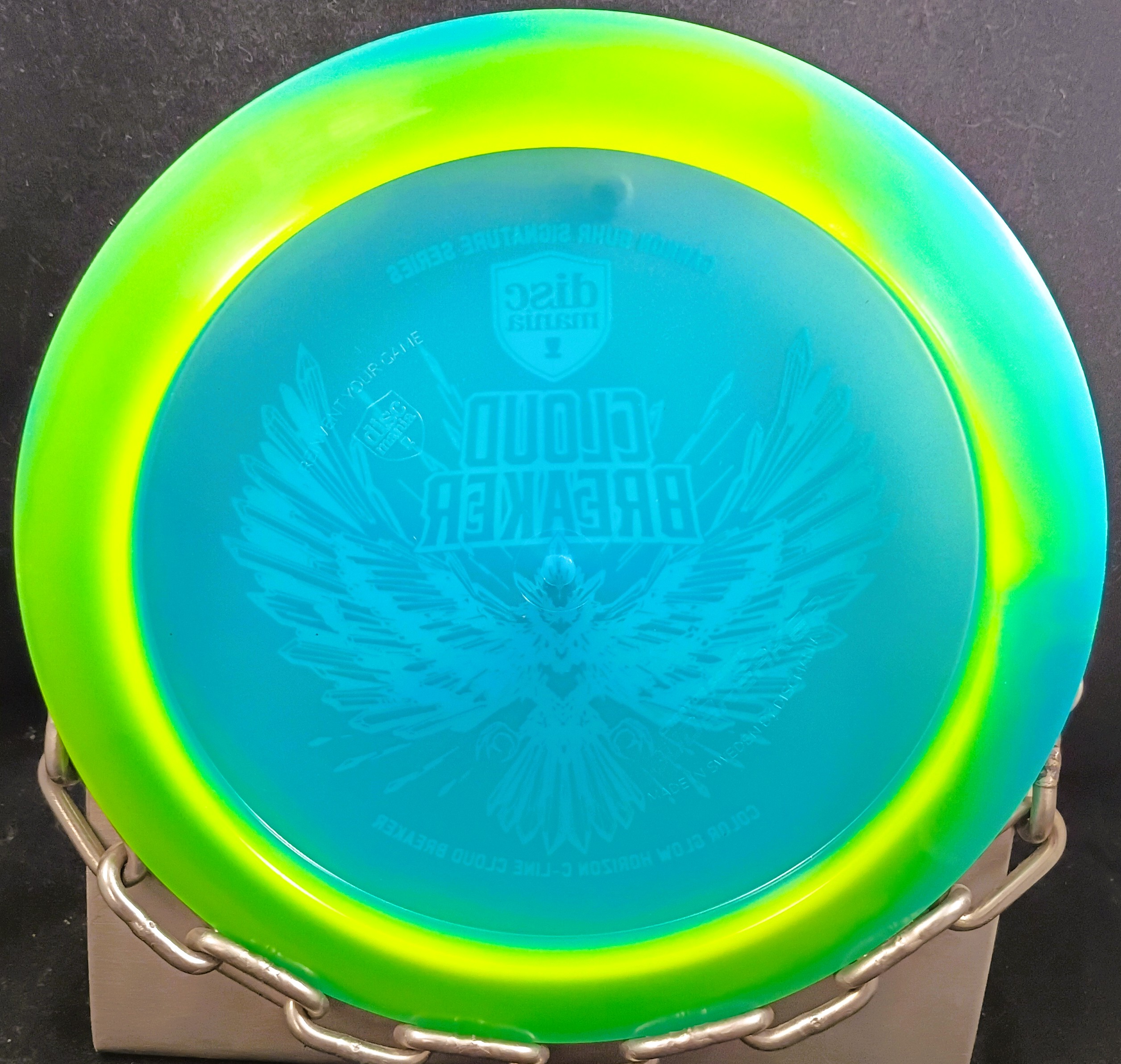 DISCMANIA SAYS: A brand new era of Cloud Breaking players has been set in motion and we’re happy to announce Gannon’s brand new signature disc with none other than the fan favorite Cloud Breaker, now available for the first time in a colorful Glow Horizon C-Line blend.