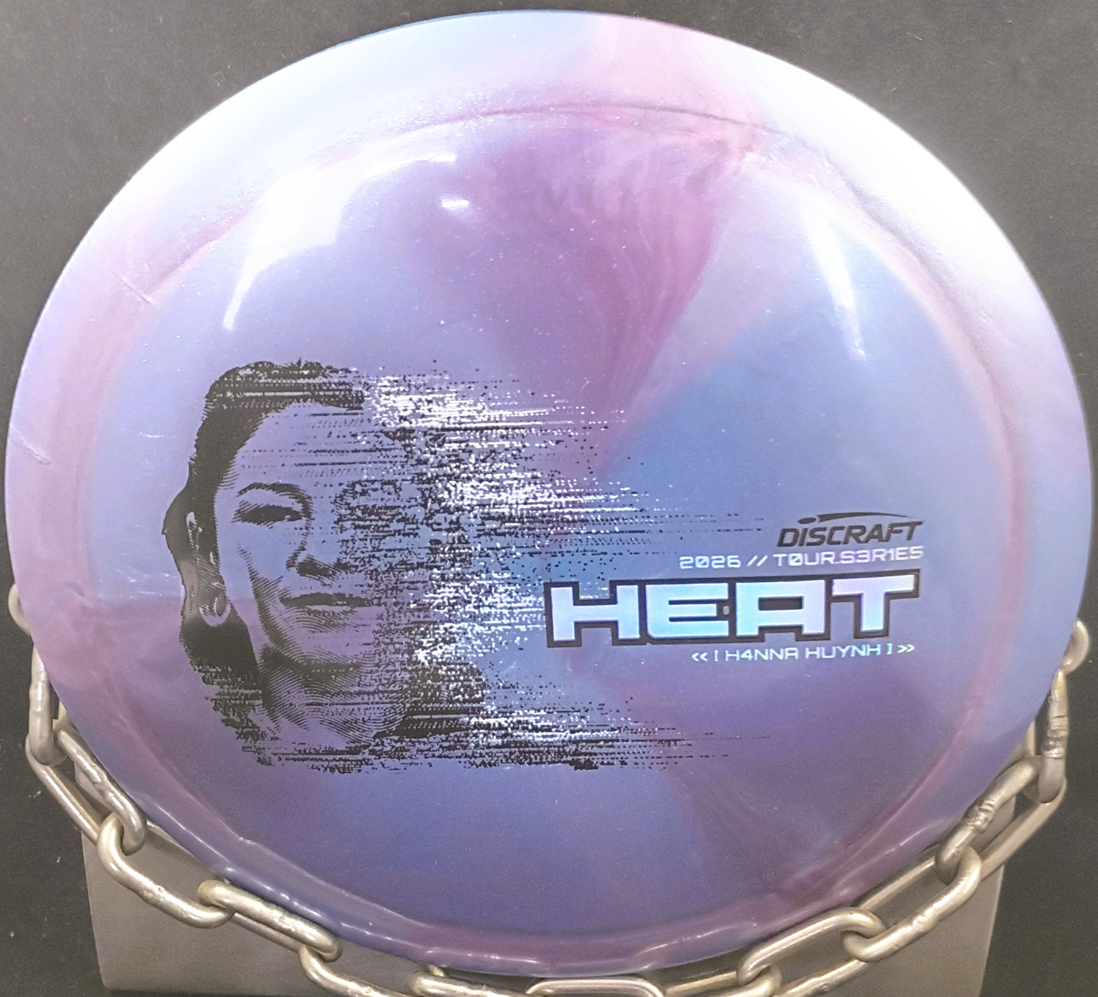 Discraft Says: Hanna Huynh’s 2026 Tour Series Heat is available in our new Special Blend, a Titanium and Big Z combination that delivers enhanced grip, lasting durability, and a more confident feel in the hand. That improved feel helps players take advantage of the Heat’s easy release, controllable turn, and impressive glide. Built for hyzer-flips, smooth turnovers, and easy distance, the Heat is a standout for developing players looking to unlock more carry and experienced players wanting a finesse driver that can shape big movement on command. The Heat™ debuted as the 2014 Ace Race proto and quickly caught fire with players for its control, glide and distance at slower arm speeds. It has a smaller rim for easier grip, and is being hailed as a breakthrough in delivering improved distance for new and developing players with its impressive glide.  Replacing the Avenger SS in his signature series, the Heat has become a go-to roller disc for Paul McBeth. See Discrafts Plastic Guide HERE:
