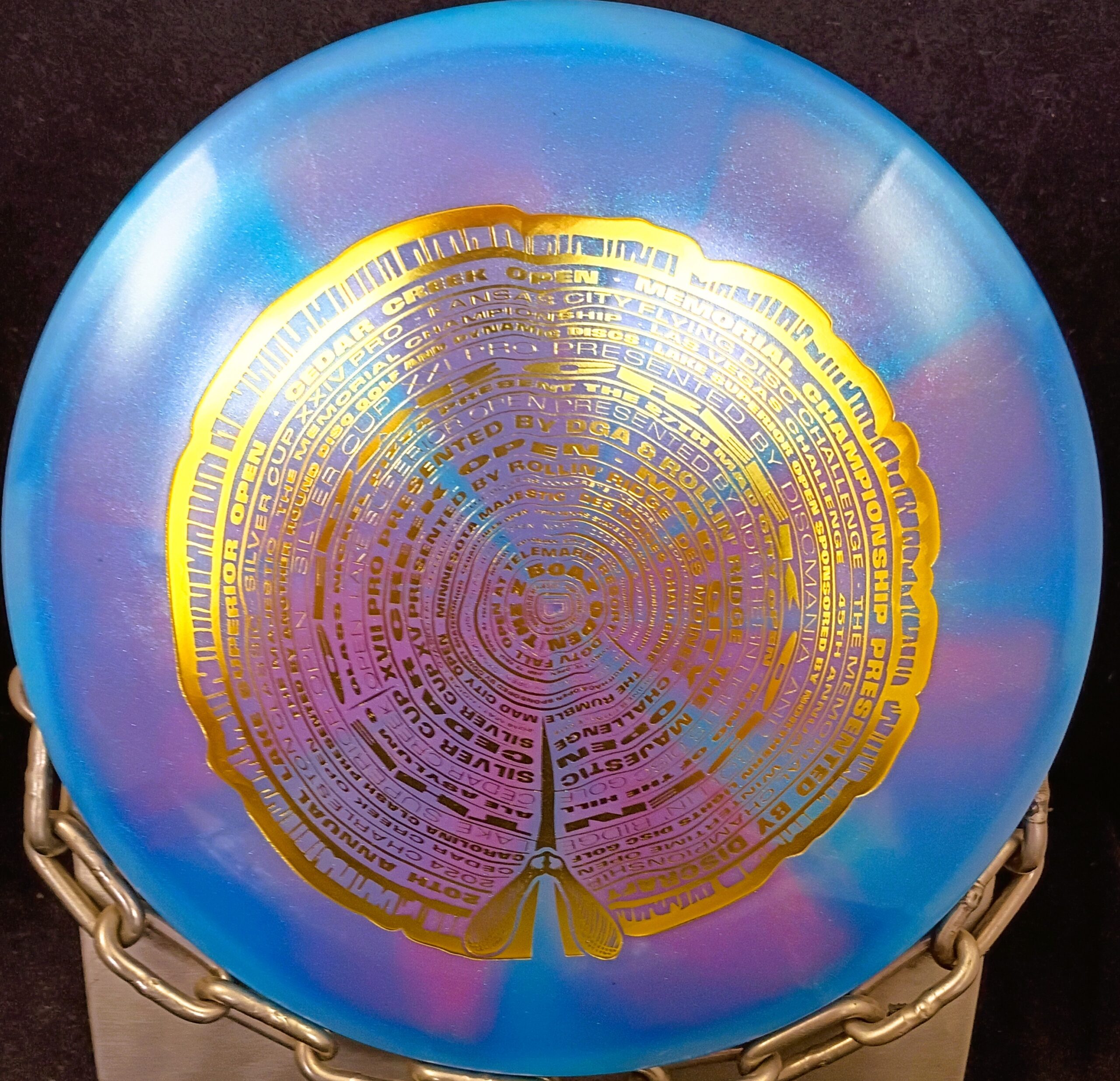 This is a Brand New Discraft Cale Leiviska Color Shift Z METEORĀ Mid Range Golf Disc 177+ grams in unthrown condition. You get the disc in the picture. The tree ring stamp lists the A tier events Cale won an amazing 20 years in a row. I filmed Cale in 2007 shooting on the lead card at the Memorial. He didn’t win this one as his card included Gregg Barsby, Dave Feldberg and Ken Climo …. so you could say the competition like the wind that day was pretty stiff. See the video HERE: