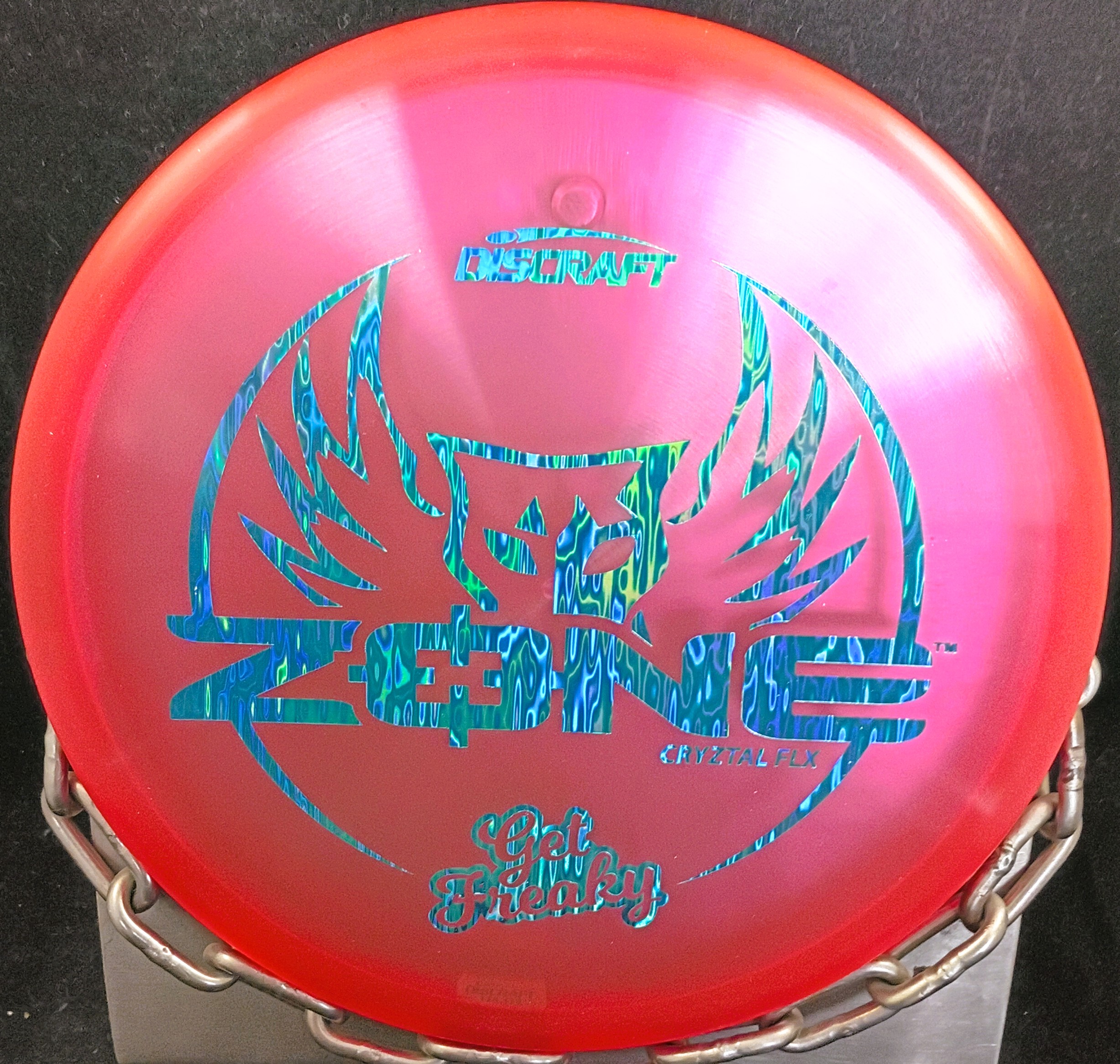 This is a Brand New Discraft Get Freaky Cryztal FLX ZONE Disc Golf Putter 173-4 grams in unthrown condition. You get the disc in the picture or it’s twin.