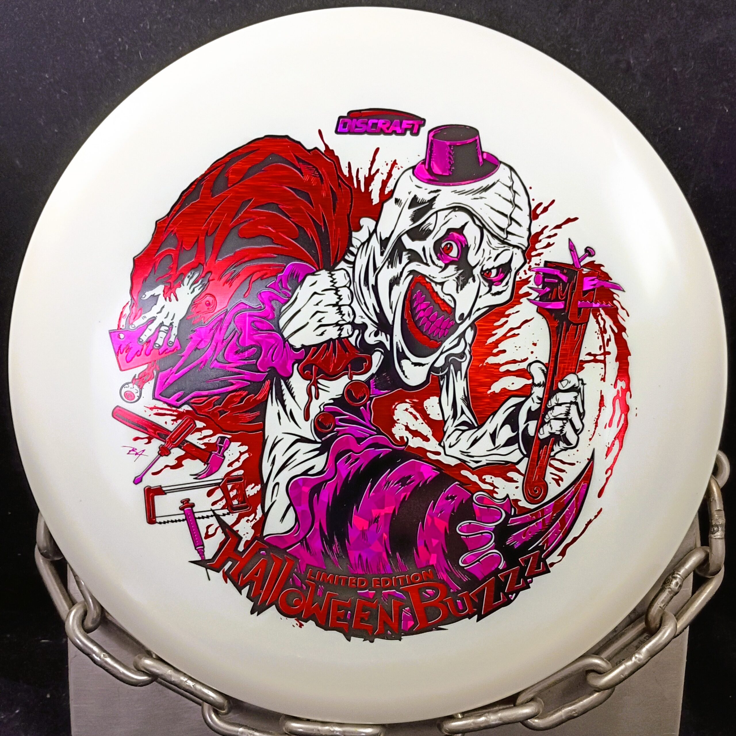 DISCRAFT Says: Under the glow of night, the 2025 Tri-Foil Glo Halloween Buzzz emerges from the shadows. An ominous clown silhouette peers from layered foils, casting an eerie shimmer across our classic glow plastic. Precision flight meets bone-chilling style, making this run as haunting in the air as it is on display. More players agree: Buzzzâ„¢ is the best golf disc you can buy, period. It’s an ultra-dependable, straight flying midrange that you’ll reach for again and again. Throw it hard and versatile Buzzzâ„¢ will hold any line you put it on. Discraft’s 30-year reputation for consistency means that if you lose it, just pull out a new one and you’re back in business.