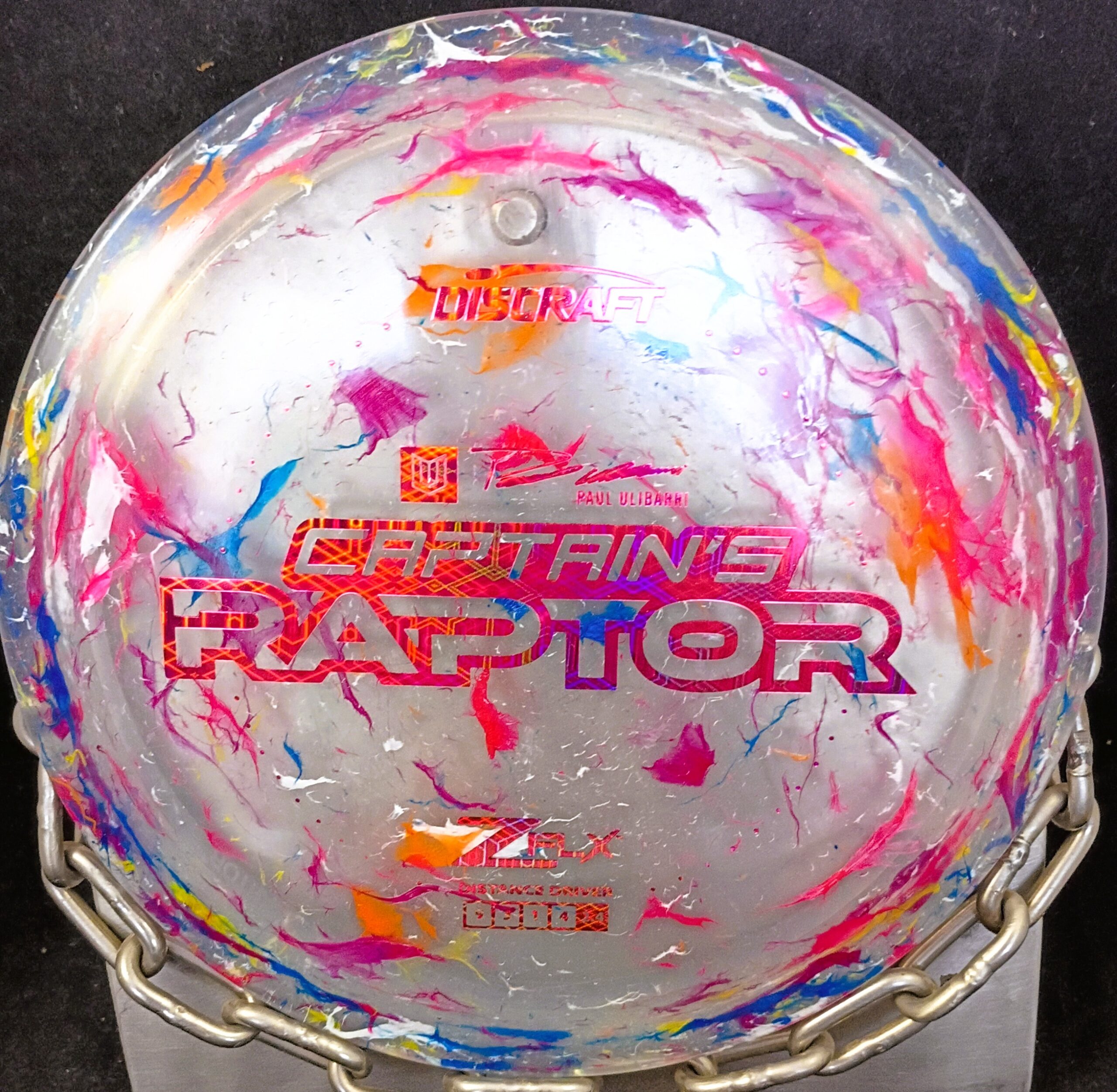 Discraft Says: Drive with confidence with the overstable Raptor driver. A staple for forehand and high speed backhand throws, with minimal turn and a powerful ending. The Captain’s Raptor is a modified-overstable Discraft Raptor ran in Special Blend ESP Swirl plastic. This disc was inspired by Team Discraft Captain, Paul Ulibarri. This is the first run ever done in ESP! See Discrafts Plastic Guide HERE