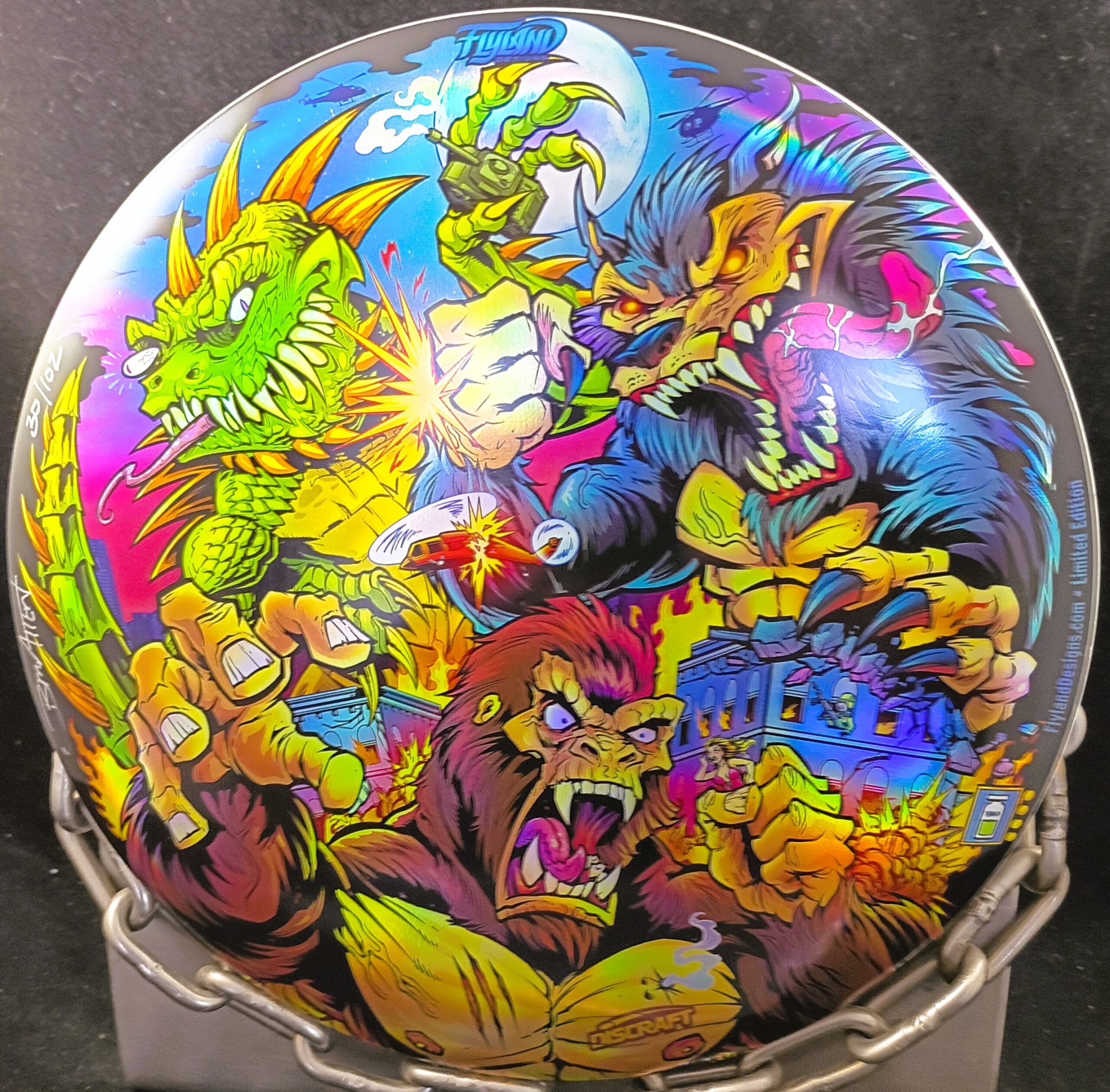 This is a Brand New Discraft Rampage Full Foil ESP BUZZZ Mid Range Golf Disc 175-6 grams in unthrown condition. Artist Brian Allen had only 102 of these made, this one is #30. It’s sealed in a bag as pictured. You get the disc in the picture.