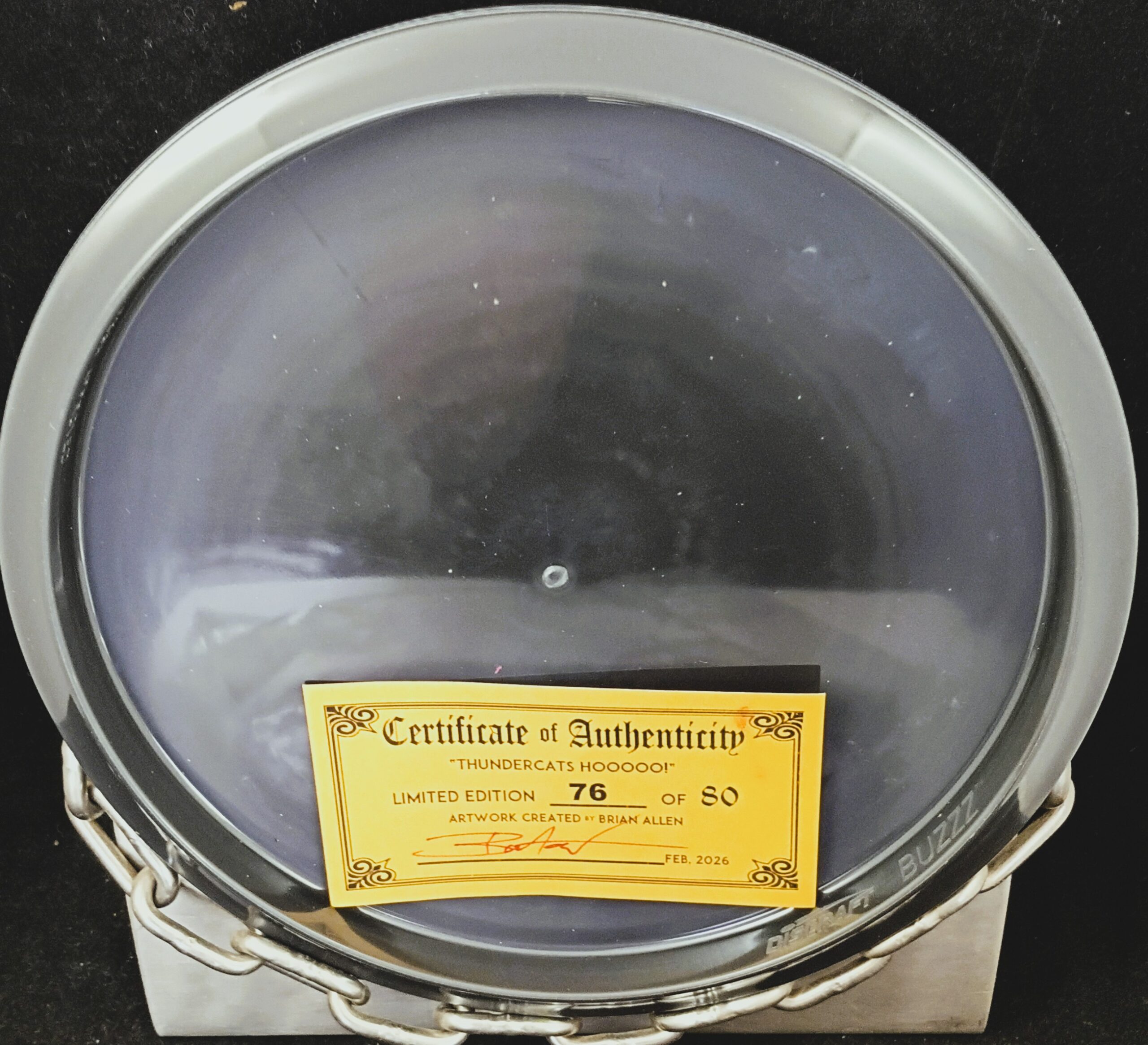 This is a Brand New Discraft Thundercats Full Foil ESP BUZZZ Mid Range Golf Disc 177+ grams in unthrown condition. You get the disc in the picture, #76 of only 80 made. Artwork by Brian Allen.