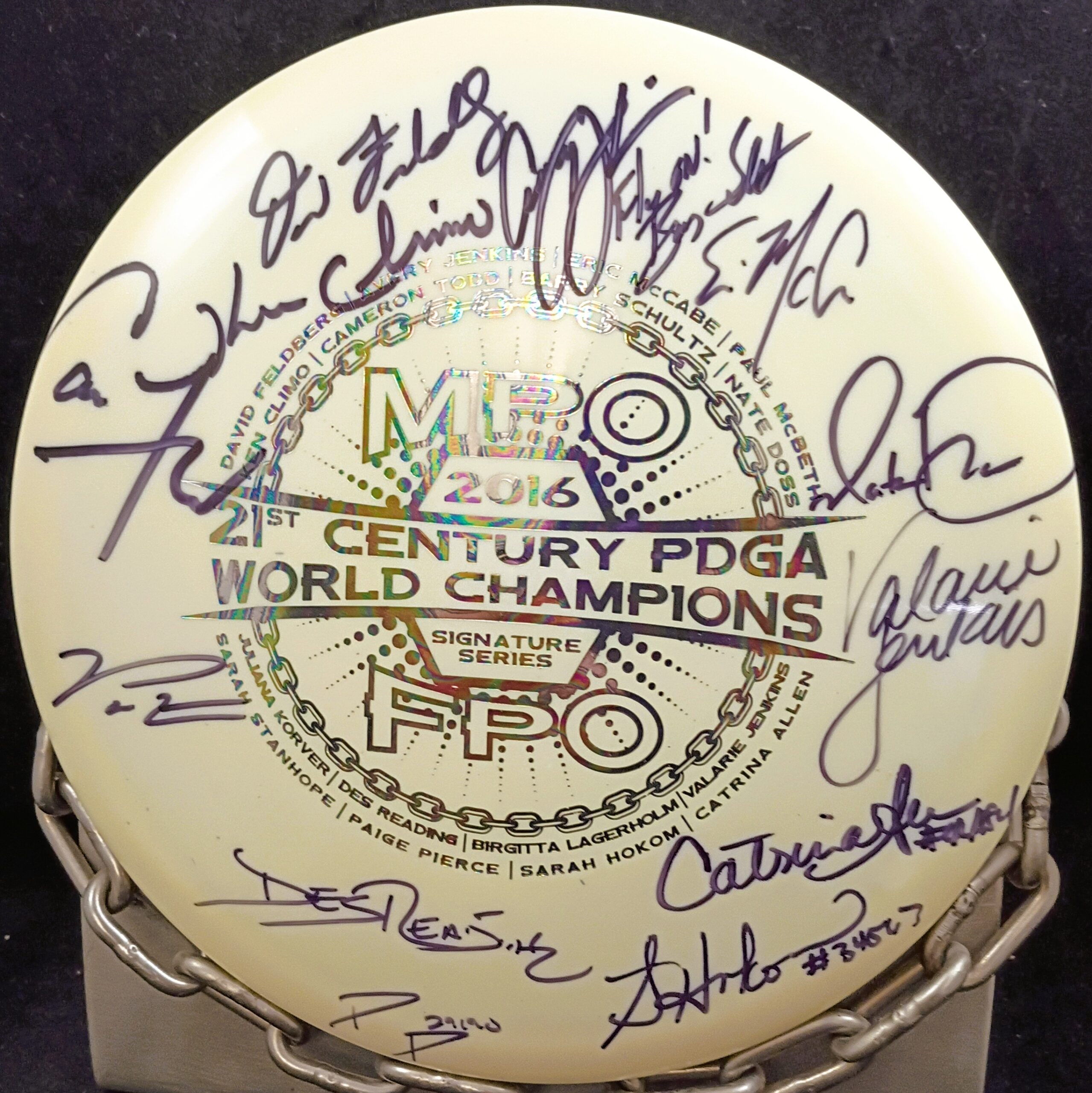 This is a Brand New Dynamic Discs 2016 Worlds Autographed Lucid TRUTH Mid Range Golf Disc 175 grams in unthrown condition. You get the disc in the picture. Autographed be a lot of the top pros including Ken Climo, Avery Jenkins, Paige Pierce and more.
