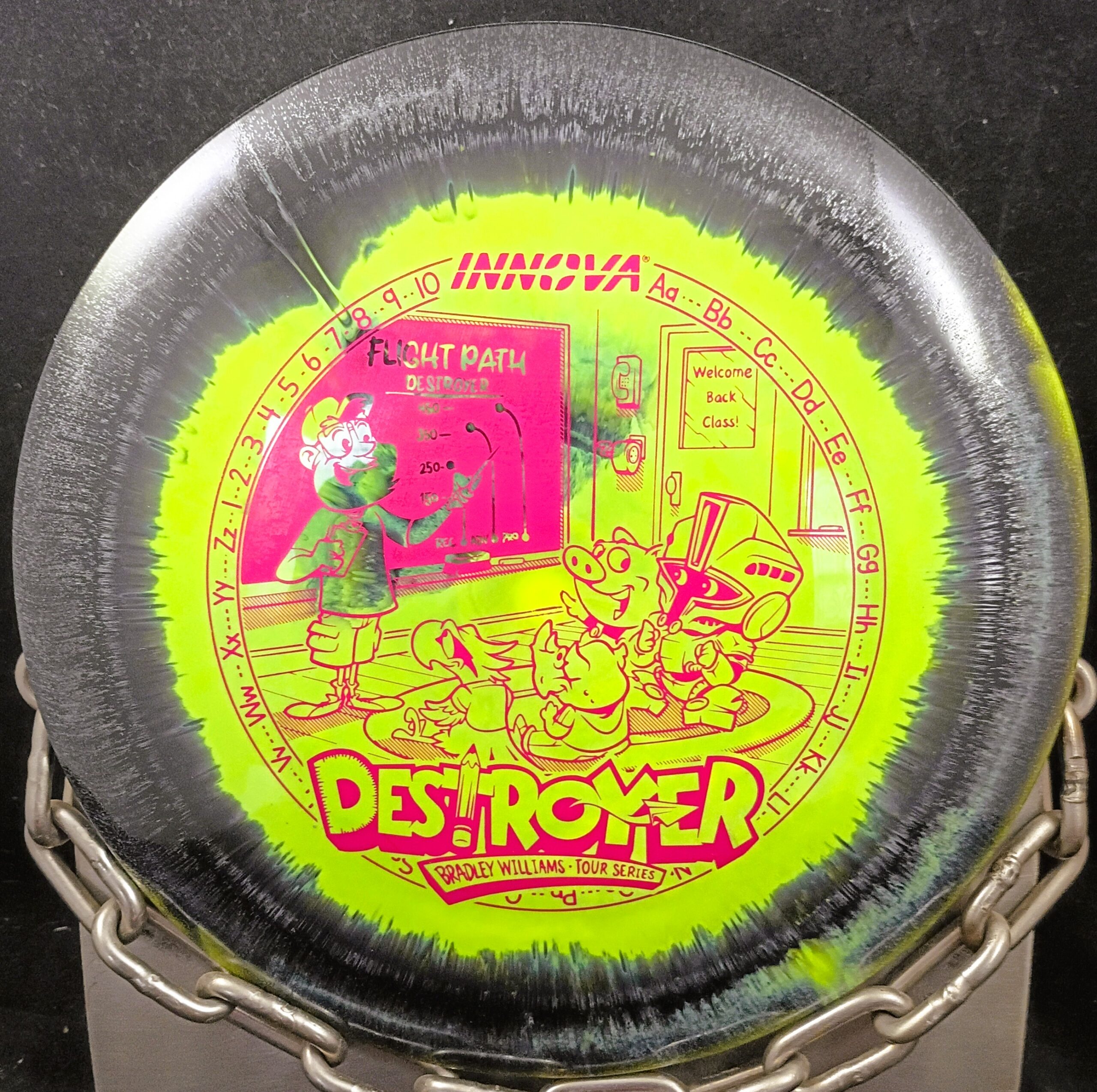 INNOVA Says: The Destroyer is a fast, stable power driver with significant glide. Great disc for sidearm throwers and those with lots of power.. Can handle headwinds and throws with off axis torque. Not for beginning players. This disc is much like a faster Wraith, but with a little more high and low speed stability.