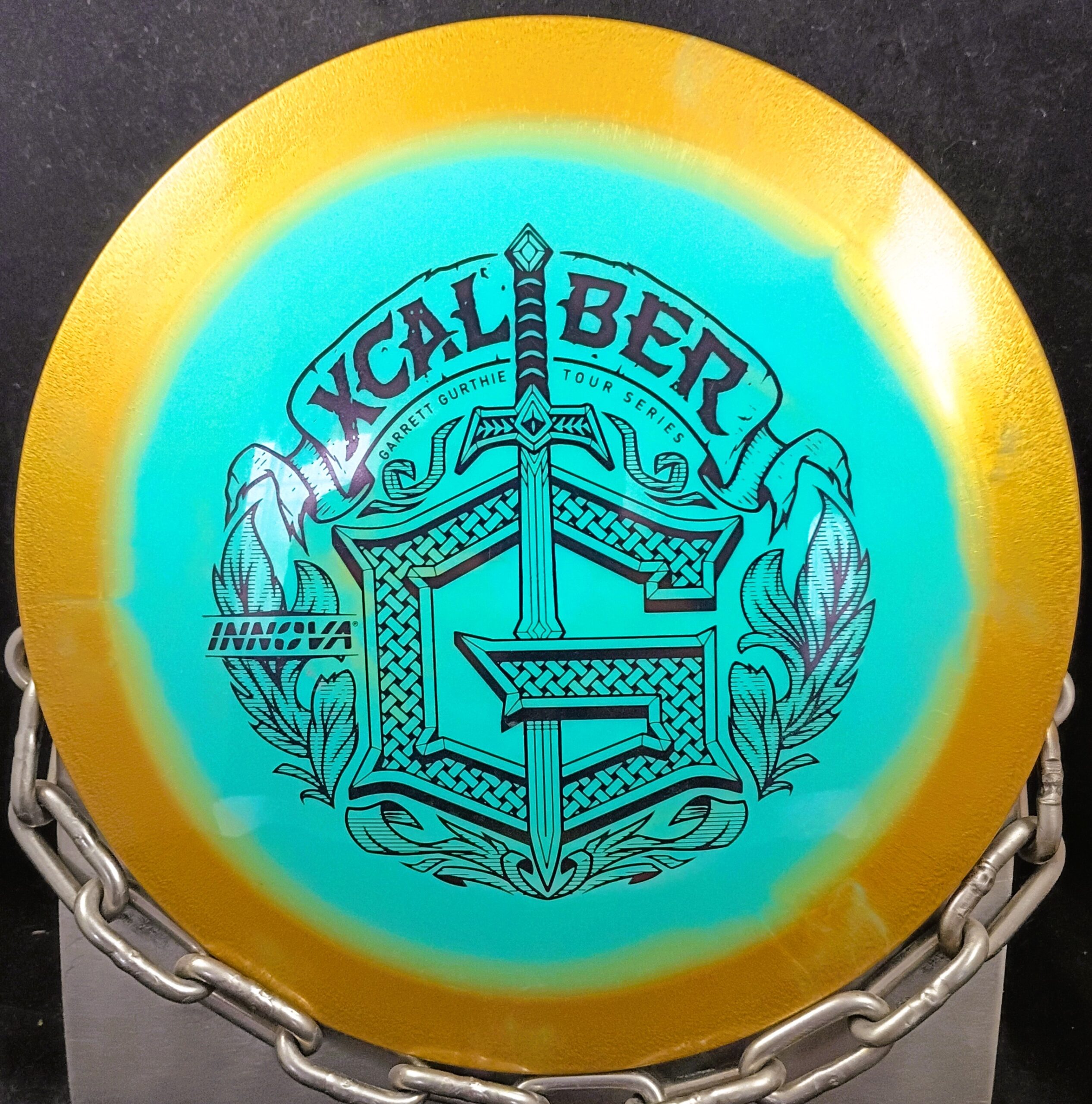This is a Brand New Innova 2025 Garrett Gurthie Tour Series Halo Star XCALIBER Disc Golf Driver 173-5 grams in unthrown condition. The disc in the picture is the disc you get!