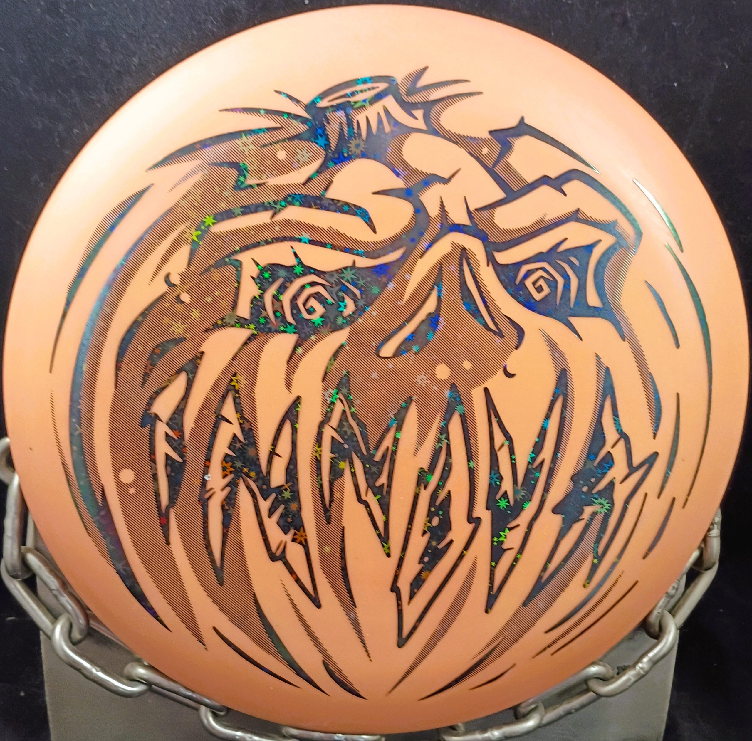 INNOVA Says: A fiendish grin is the centerpiece of the XXL hotstamp for this year’s Innova Pumpkin disc—a tradition now in its 29th season. Built for the dark, the Proto Glow Nexus Aviar is easy to see and keeps its grip when the temps drop and other plastics start to slip. Read more about the history of the Innova Pumpkin disc. The Aviar Putt & Approach is Innova’s most popular disc model and the number one putter in disc golf. It is versatile and is dependable in all conditions. A must have disc for any serious competitor’s bag. This is the beadless model that provides an excellent grip. It is a straight flier with a predictable finish. The Aviar is the number one putter in disc golf. It has won more World Championships than all other putters combined. The Big Bead Aviar is also known as the Aviar Driver and the very same mold has been used in KC Pro & JK (Julianna Korver)Pro Aviars. The Big Bead gives the disc more stability and a longer lifespan.The KC (Ken Climo) Aviar Pro Aviar is made from the Aviar Big Bead mold in a firm blend of Pro Plastic for players who prefer a stiffer disc. Great for putts, approach shots, and short drives. Artist Michael Ramanauskas, who drew inspiration for the design from childhood salmon fishing trips, said making this parody design was a fun challenge. A big part of his job was to show Dr. Putter on a disc in a way that gave “secondary association.” The carbonation bubbles were also key, added Ramanauskas.
