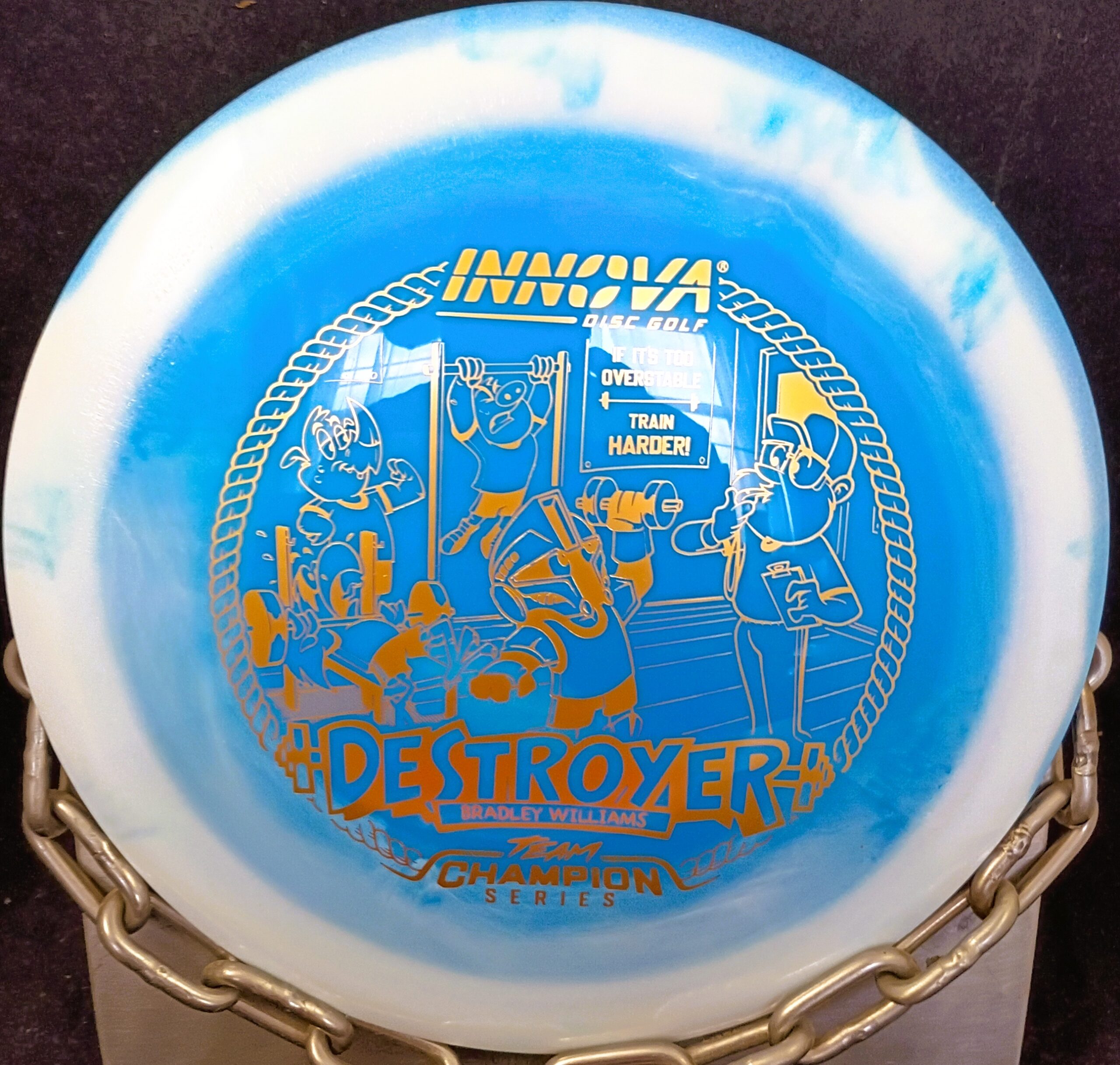 INNOVA Says: The Destroyer is a fast, stable power driver with significant glide. Great disc for sidearm throwers and those with lots of power.. Can handle headwinds and throws with off axis torque. Not for beginning players. This disc is much like a faster Wraith, but with a little more high and low speed stability.
