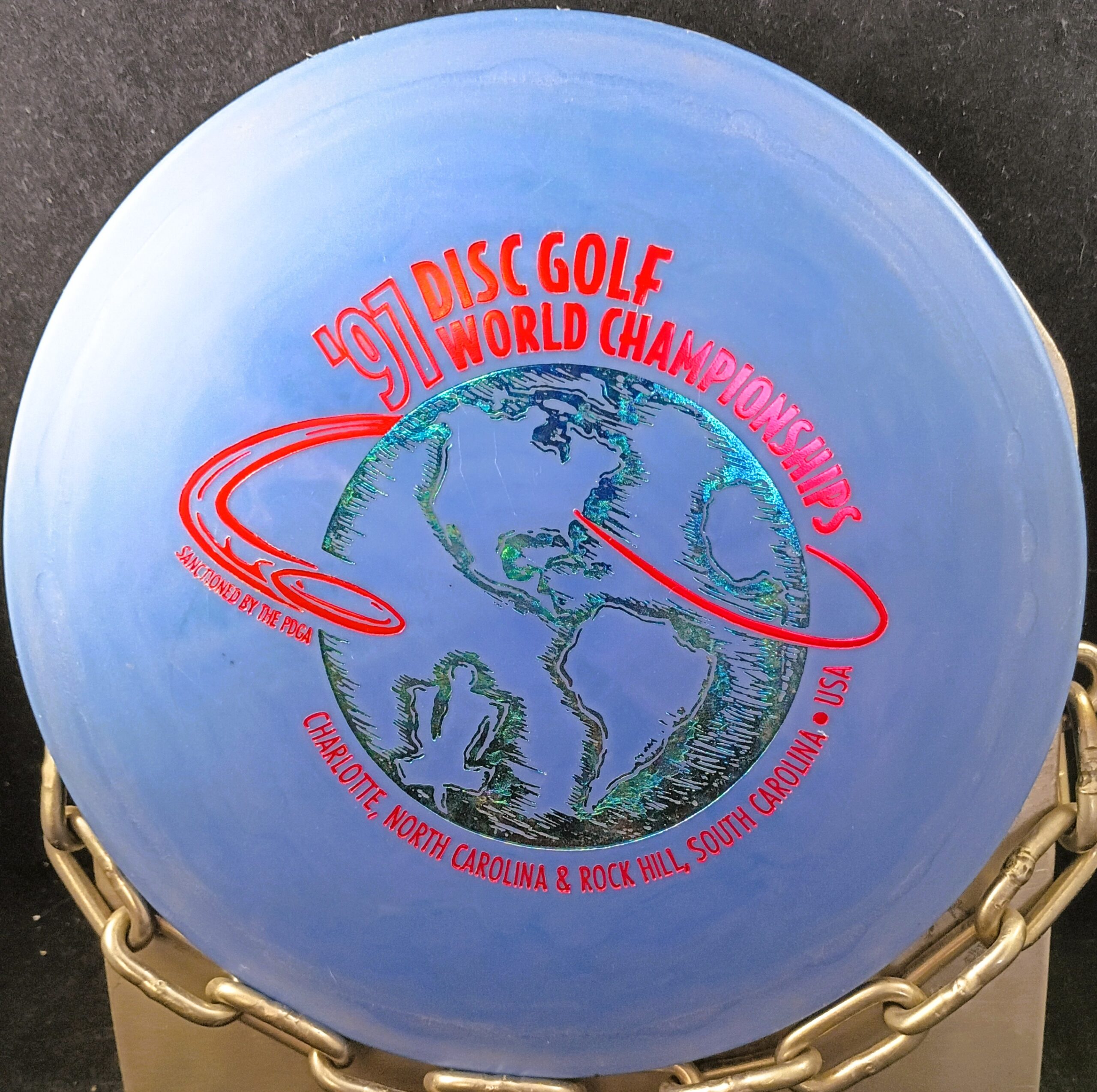 This is a Brand New Innova 1997 Disc Golf World Championships GAZELLE Disc Golf Fairway Driver 175 grams in unthrown condition. Ken Climo won this event for his 8th World Championship in a row. The disc in the picture is the disc you get.