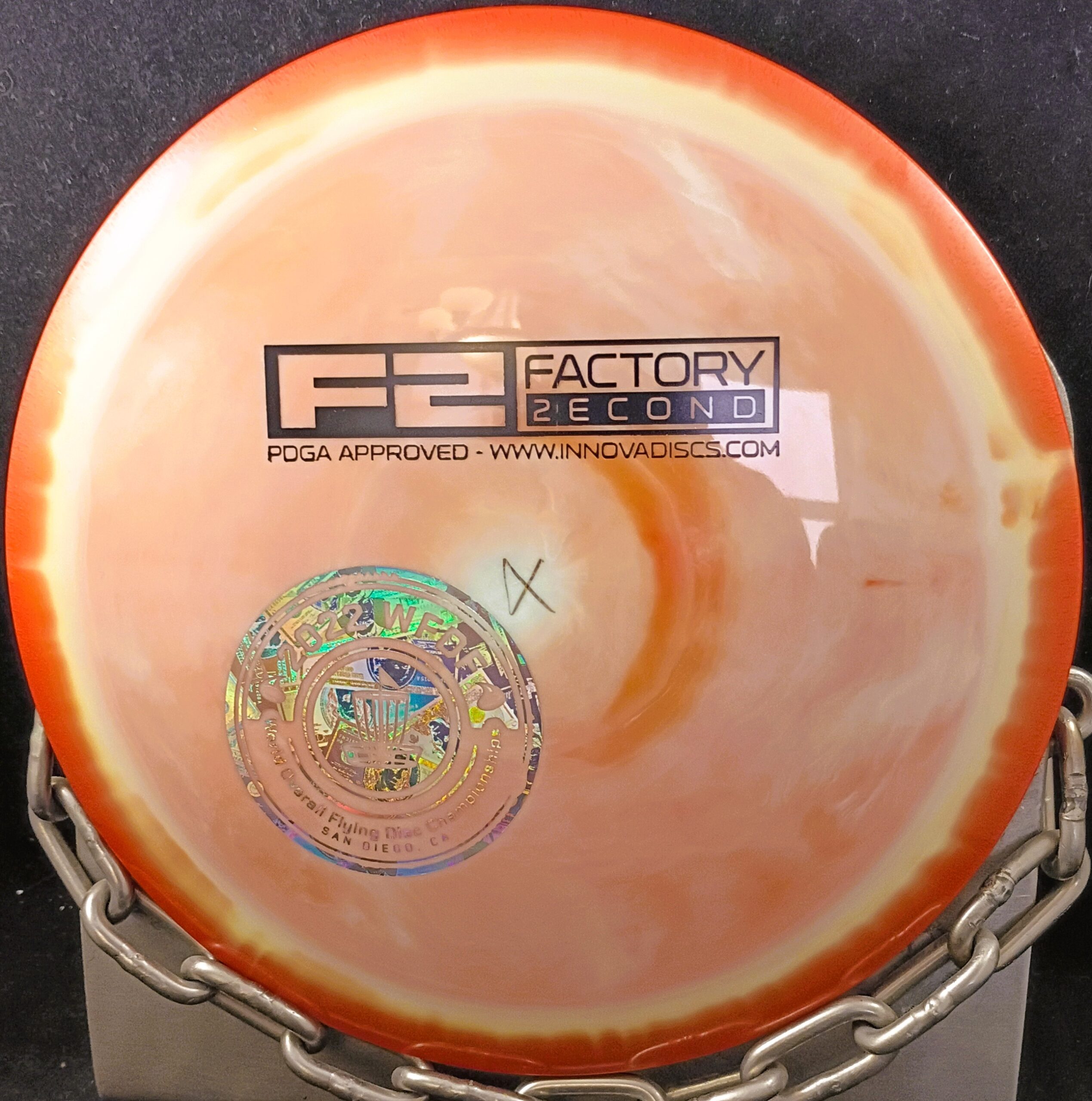 Disc-Orange/White— Stamp-Black F-2/Silver WFDF World Flying Disc Federation