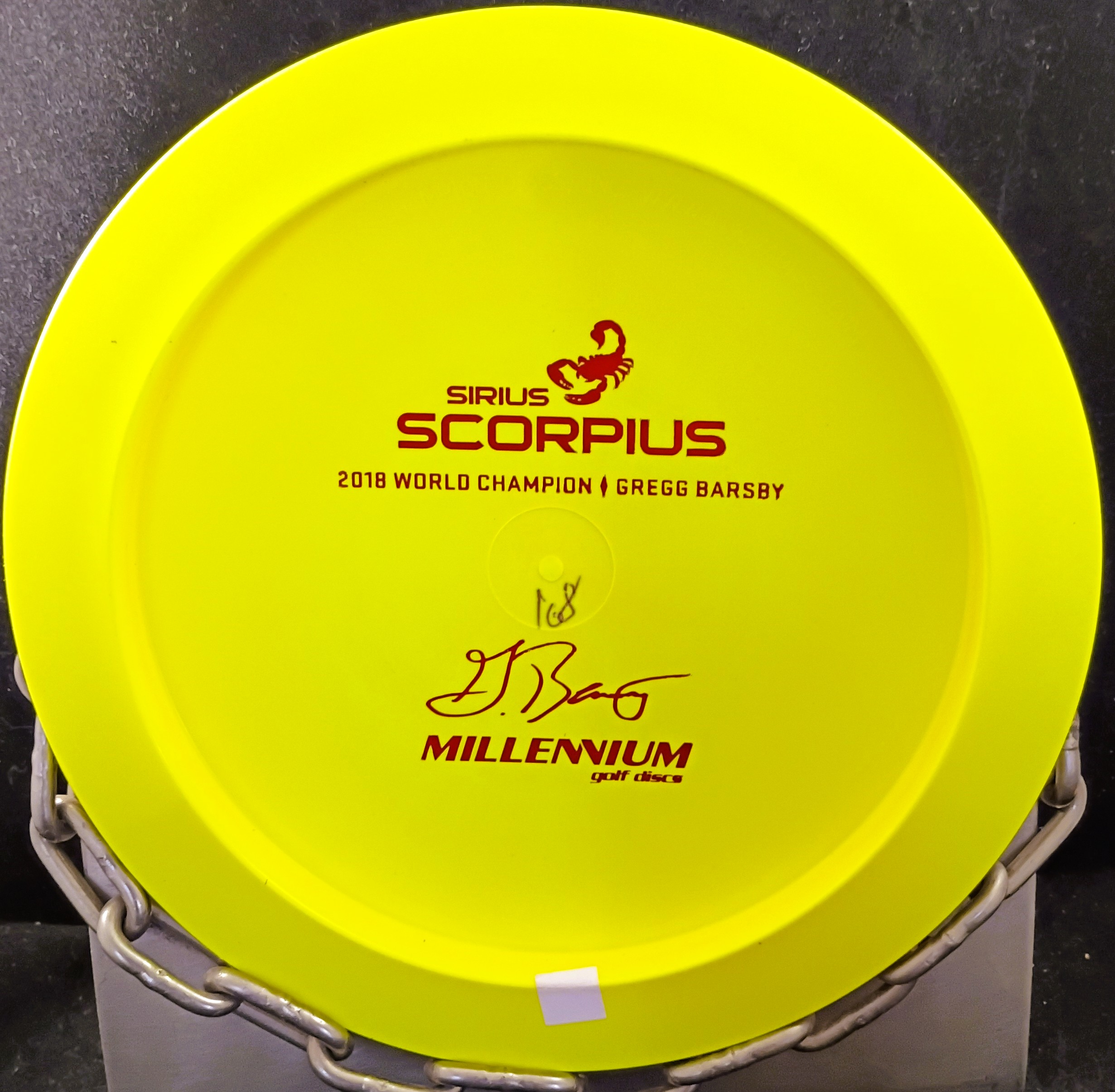 This is a Brand New Millennium Gregg Barsby 2018 World Champion Bottom Stamp Sirius SCORPIUS 1.12 Disc Golf Driver 171 grams in unthrown condition. You get the disc in the picture or it’s twin.